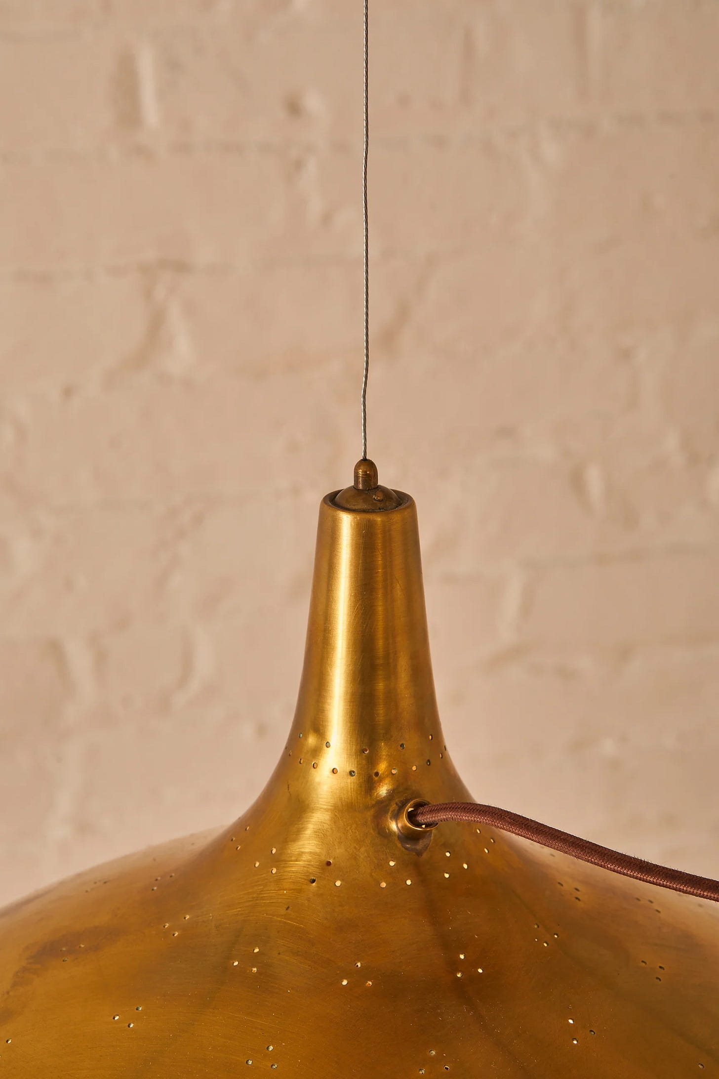 No part of the A1984 ceiling lamp is not functional, and yet the handling of each element shows a sensitivity that is at times almost poetic. I especially love the finely wrought spring detail in the pulley mechanism which a less inspired designer would simply have hidden. Tynell’s characteristic perforations, shown below in a slightly different design, also bear witness to this sensitivity, emphasising the slenderness of the brass and bringing to mind a constellation of stars when the light is illuminated. Though these lamps were mass-produced, these details make them feel highly personal and almost handmade.